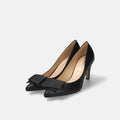予約:2026SS:リボン付き ポインテッドトゥパンプス(m72027)ブラック