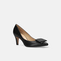 リボンの付いたエレガントなパンプス。ドレスやオケージョンシーンに最適なきれいめパンプスです。
