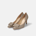 予約:2026SS:リボン付き ポインテッドトゥパンプス(m72027)シルバー